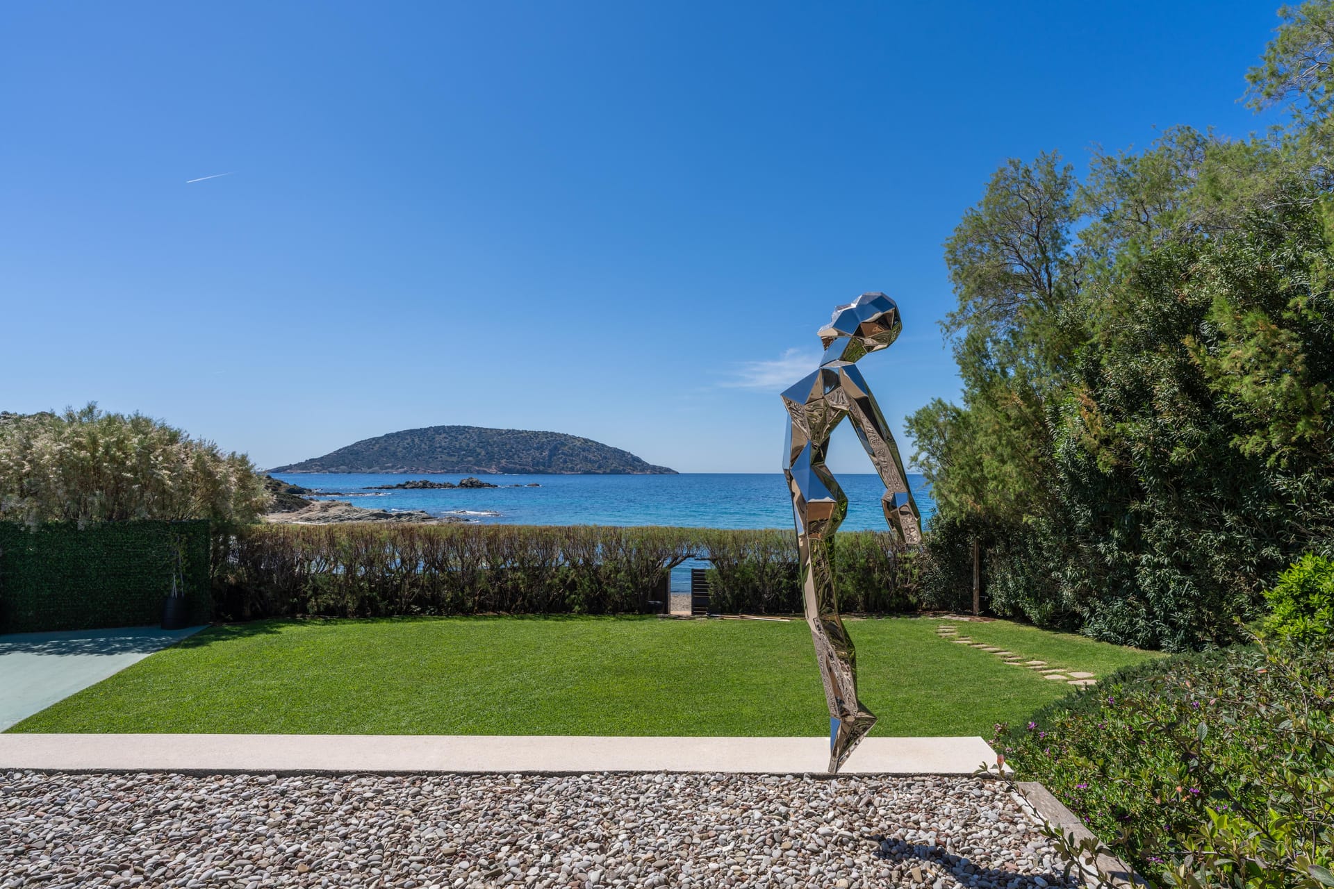 Designed with a harmonious blend of stone, wood, and metal, the villa is set amidst lush greenery and carefully landscaped gardens. The resort features two swimming pools, direct beachfront access, a tennis court, a paddle court, and a mini soccer field—all thoughtfully curated to provide the perfect balance between opulence and natural beauty.