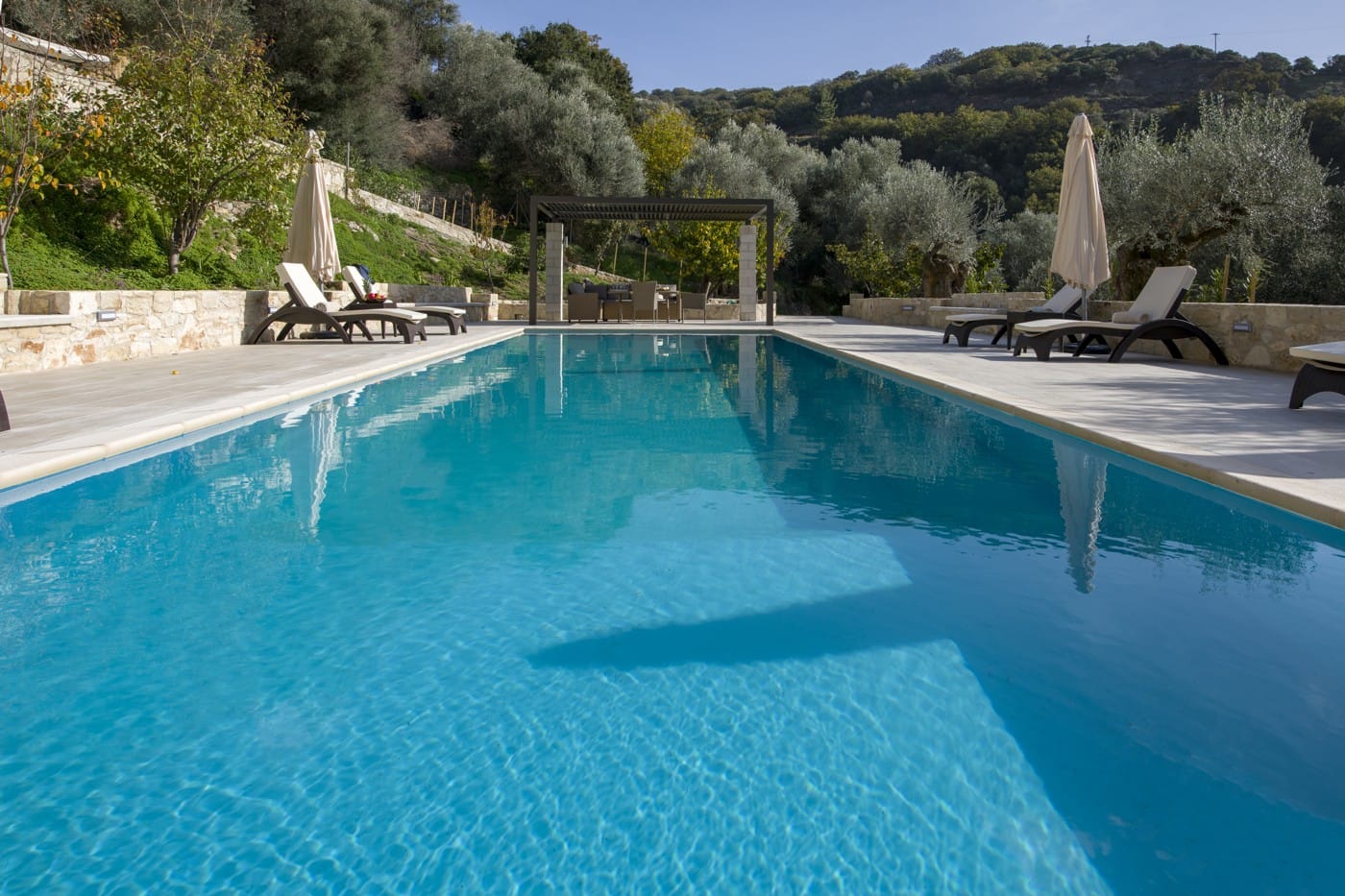 Serenity River Villa is a newly constructed villa and it is located in Chania, at the picturesque village of Kakodiki, within walking distance of Paleochora. Our luxury villa, intended for guests with high aesthetics, that are looking for a private retreat, is designed to offer them a unique and peaceful vacation with moments of relaxation like enjoying the magnificent Cretan nature with its varied vegetation (sycamores, eucalyptus, myrtles, olive trees), listening to the chirping of birds and to the gurgling of river water.