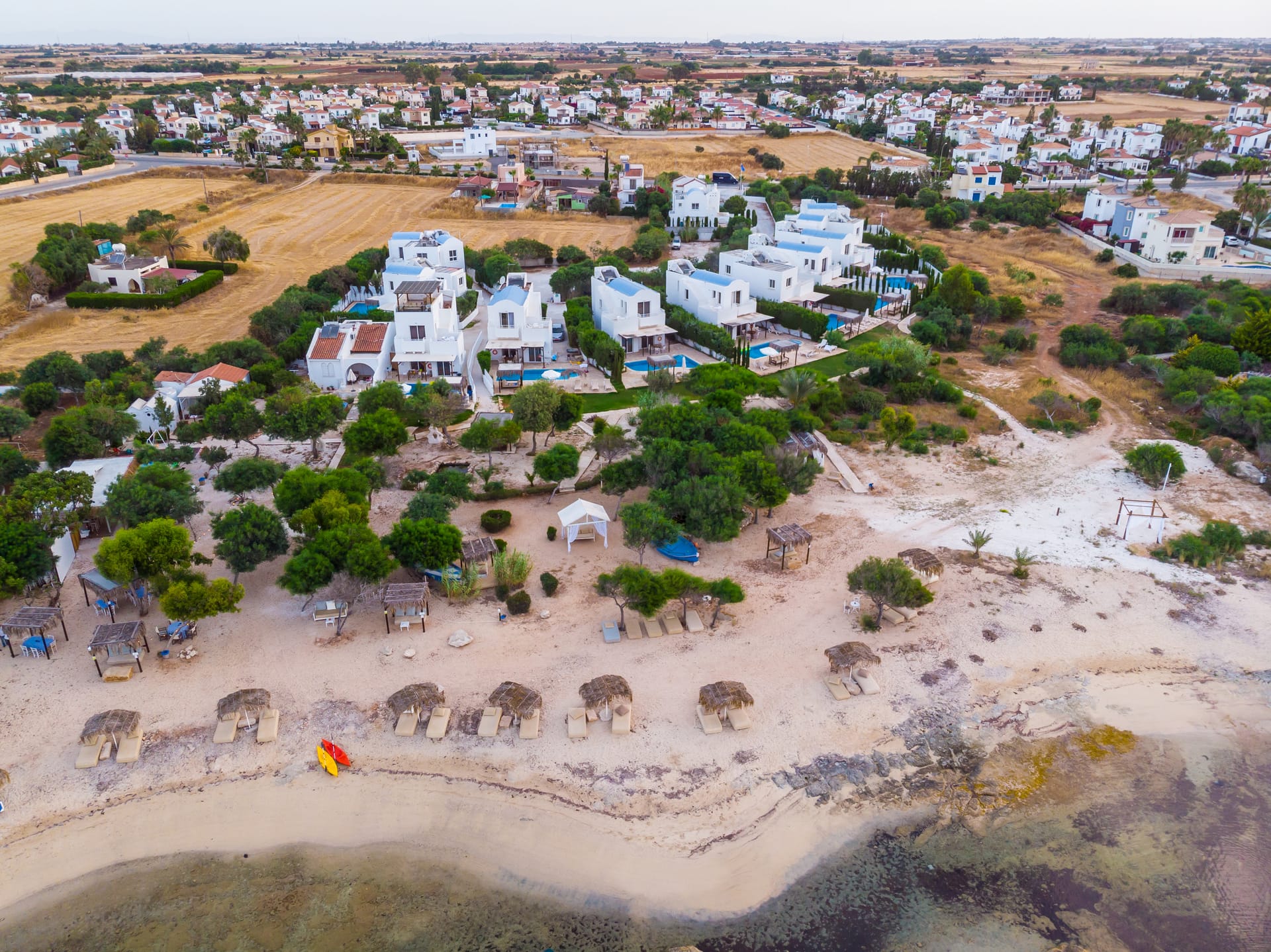 Designed by the famous Cypriot Sculptor Andreas Lympouridis, Thalassines Villas is a beautiful, family run hotel located in the quiet area of Ayia Thekla, just 10 minutes’ drive from Ayia Napa city centre.