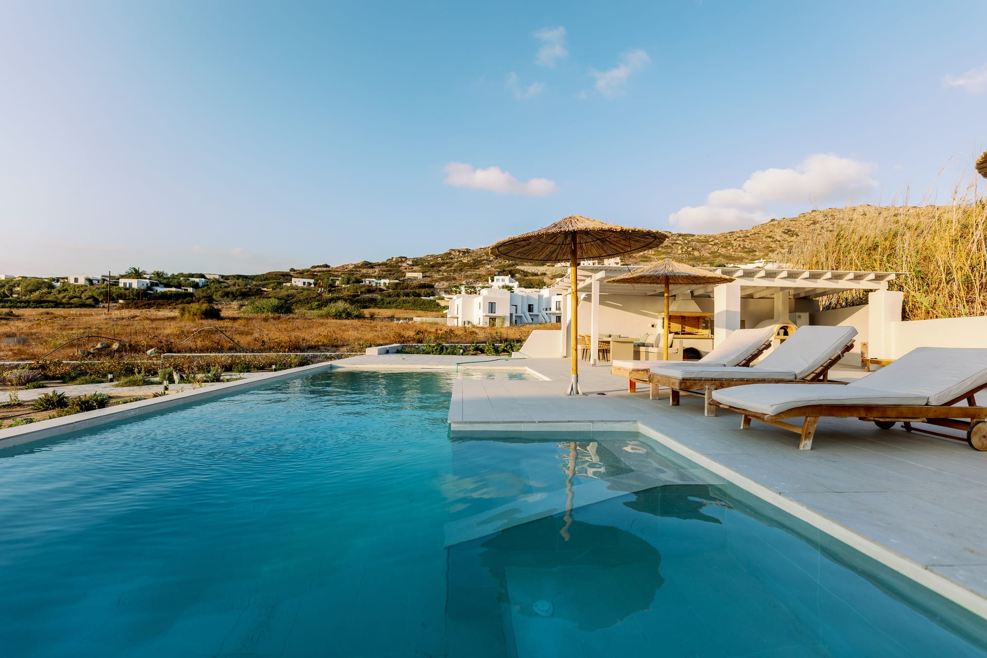 Just steps from the turquoise waters of Orkos, this retreat embodies refined island living. The highlight of Villa Finest Earth is its two thoughtfully designed bathrooms—one with en suite facilities—offering elevated comfort and privacy.